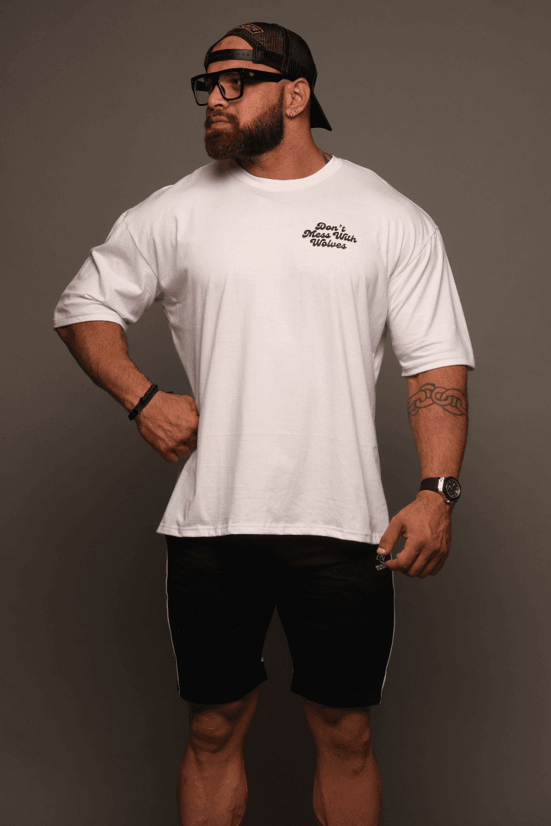 Featuring a minimalist yet powerful design, the tee proudly displays the assertive message, “Don’t Mess with Wolves.” The crisp white backdrop enhances the impact, creating a clean and timeless aesthetic. The oversized fit not only ensures maximum comfort but also adds an edgy, street-style vibe to your ensemble.