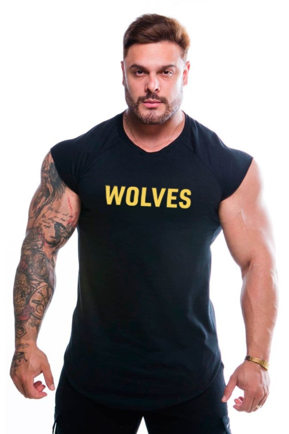 Wolves Signature Sleeves Tee with yellow print. Vibrant colors to match your lifestyle. The piece is made of Premium 100% cotton fabric and has a great finish, combining beauty and comfort. Exclusive longline modeling with rounded hem. Your lifestyle goes with you wherever you go, get yours now.